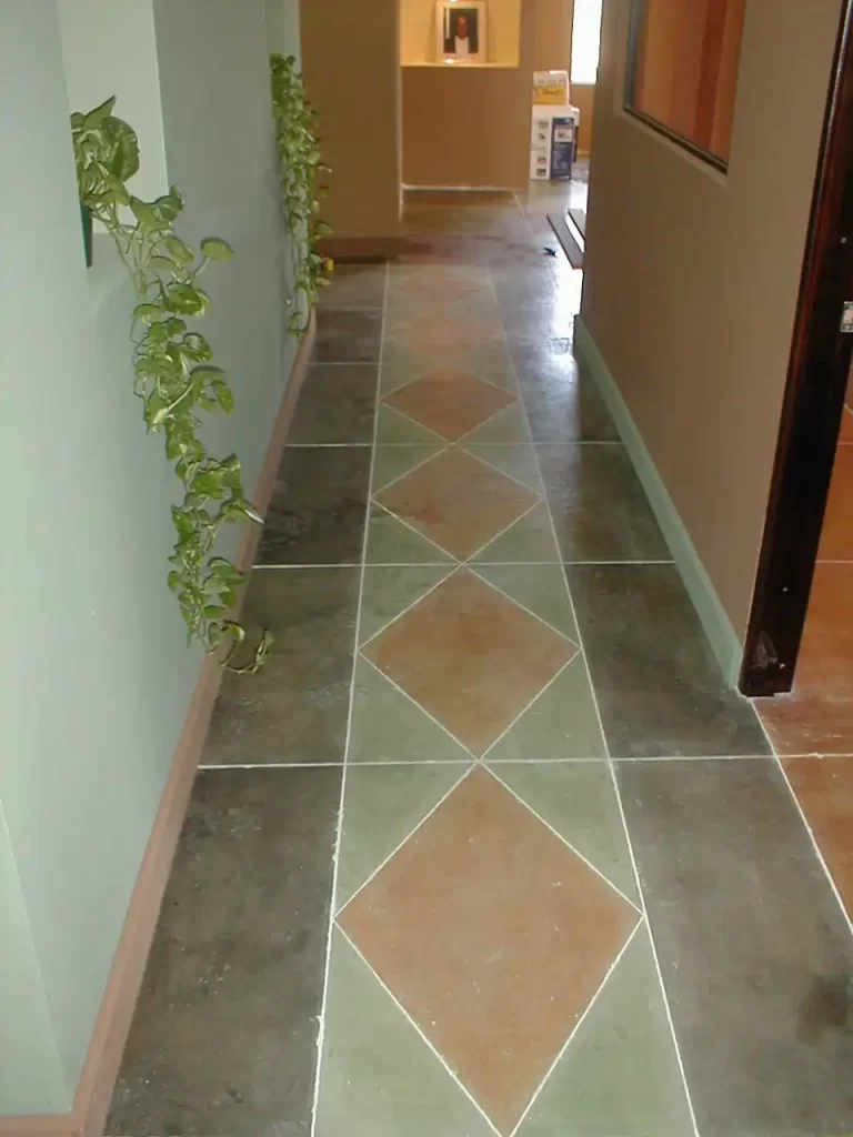 Chemical staining has become one of the most popular ways to achieve color in concrete. This popularity is ever increasing as more home-owners,contractors and do-it-yourselfers learn of the endless possibilities of this decorative and functional option of beautifying their concrete floor. While the cost relative to tile alone is attractive, it is the beauty of a multi-hued, variegated, patterned look that keeps our customers coming back.