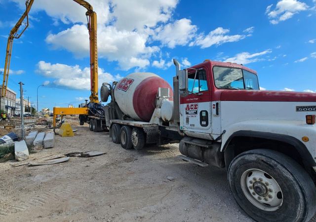 We employed in-house quality control including test mixing and field sampling, and also perform in-house strength tests for our concrete. Our production facility is a dry-batch type plant, from which all batching is done by weight, and tickets for each load are logged and can be provided detailing the specifics of aggregates used in your concrete. Our pumping services, which include line and hydraulic boom pump, can be employed for jobs of up to 125 feet high; we can reach every crack and crevice when filling your concrete project.